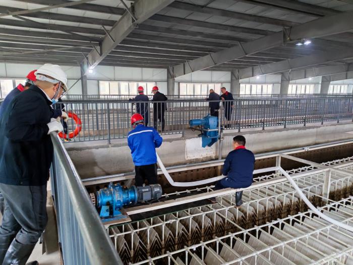 市自來水公司水廠二分廠主要承擔(dān)著為市區(qū)居民提供生活飲用水的重任,使用的是優(yōu)質(zhì)的丹江水源,為保障市民正常生產(chǎn)生活用水,水廠提前編制清洗方案,采取輪流清洗的方式對沉淀池、反應(yīng)池進行清淤排泥處理,由于涉及有限空間作業(yè)且池深度達8米,30多名干部職工嚴(yán)格落實相關(guān)規(guī)定,依照流程操作對沉淀池、反應(yīng)池內(nèi)壁、池底、排水管口等進行了全面清洗,對池底殘留的污泥利用鐵鍬進行徹底鏟除,并進行消毒處理,預(yù)計經(jīng)過4天時間徹底將沉淀池、反應(yīng)池清理干凈。