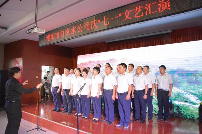 “沒有共產(chǎn)黨就沒有新中國,沒有共產(chǎn)黨就沒有新中國……”6月23日,在中國共產(chǎn)黨百年華誕即將到來之際,市自來水公司慶祝中國共產(chǎn)黨成立100周年職工文藝匯演在機關(guān)大會議室隆重舉行。來自各科室、二級單位的供水職工,用嘹亮的歌聲唱響百年輝煌,用深情的朗誦凝聚奮進力量,用優(yōu)美的音樂傳承紅色基因,用一場人人參與的文藝匯演把黨史學習教育推向高潮引向深入。