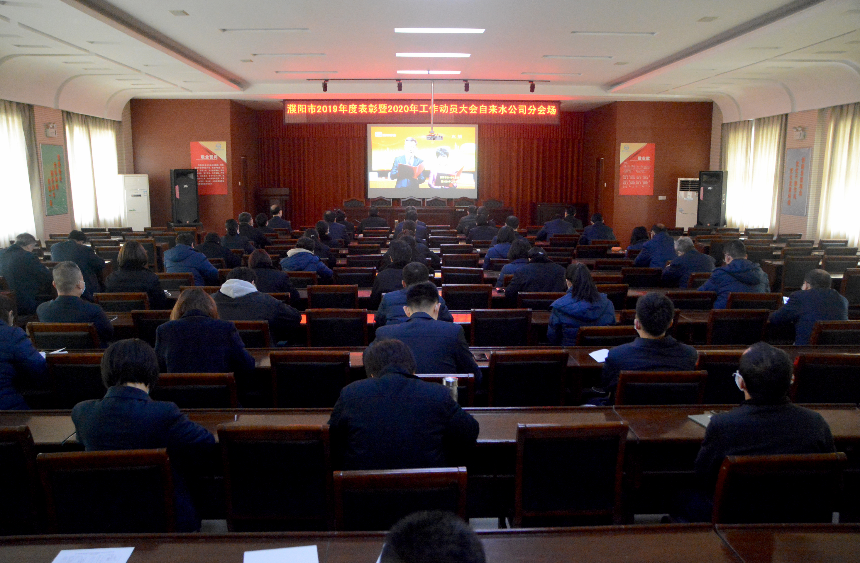 凝心聚力新時(shí)代,砥礪前行新征程。3月30日,濮陽(yáng)市自來(lái)水公司設(shè)分會(huì)場(chǎng),組織機(jī)關(guān)科室和二級(jí)單位負(fù)責(zé)人90余人集中收看濮陽(yáng)市2019年度總結(jié)表彰暨2020年工作動(dòng)員大會(huì)實(shí)況直播。大會(huì)全面回顧總結(jié)了過(guò)去一年濮陽(yáng)市主要工作成效,表彰獎(jiǎng)勵(lì)在各條戰(zhàn)線做出突出貢獻(xiàn)的先進(jìn)單位和個(gè)人,并安排部署了新一年工作任務(wù)。上午9時(shí),直播一開(kāi)始,在座的每一位干部職工邊聽(tīng)邊記,切實(shí)把精神吃透、領(lǐng)會(huì)透。