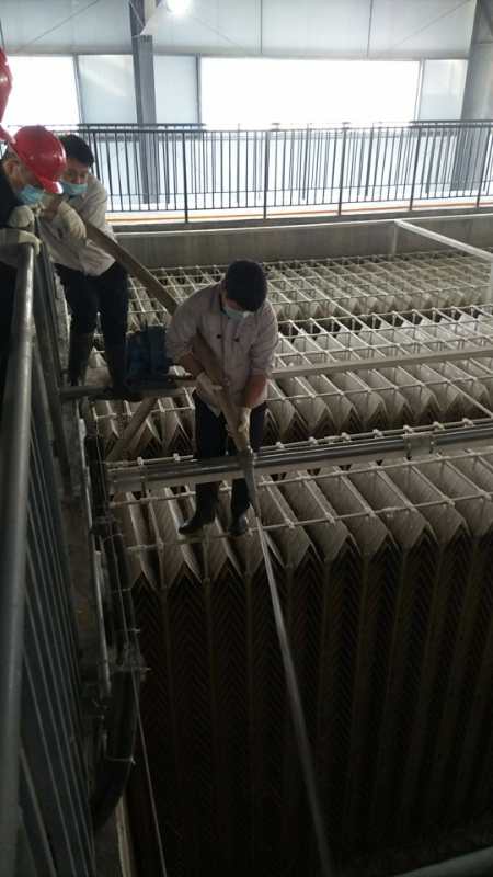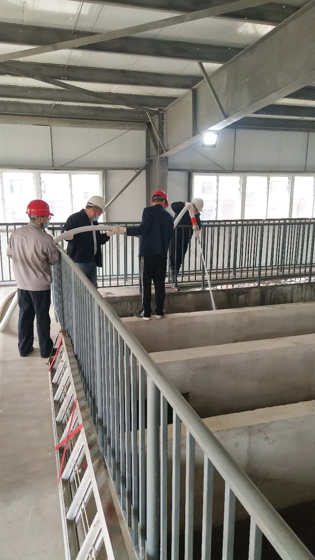濮陽市第二水廠主要承擔著為市區(qū)居民提供生活飲用水,使用的是優(yōu)質(zhì)的丹江水源,為保障市民正常生產(chǎn)生活用水,第二水廠提前編制清洗方案,采取輪流清洗的方式對4個絮凝沉淀池進行清淤排泥處理,由于涉及有限空間作業(yè)且絮凝沉淀池深度達10米,30多名干部職工嚴格落實相關(guān)規(guī)定,依照流程操作對絮凝沉淀池內(nèi)壁、池底、排水管口等進行了全面清洗,對池底殘留的污泥利用鐵鍬進行徹底鏟除,并進行消毒處理,經(jīng)水質(zhì)檢測合格,恢復使用。