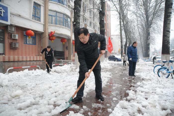 勞動現(xiàn)場,公司主要領導和職工一起相互配合、齊心協(xié)力,揮舞著鐵鍬,你鏟我推,一派熱火朝天的景象,一點點地將冰雪鏟下來集中堆放,盡管大家的鞋濕了、衣服臟了,但看到掃出了干凈的道路,方便了行人出行安全,臉上都洋溢了笑容。