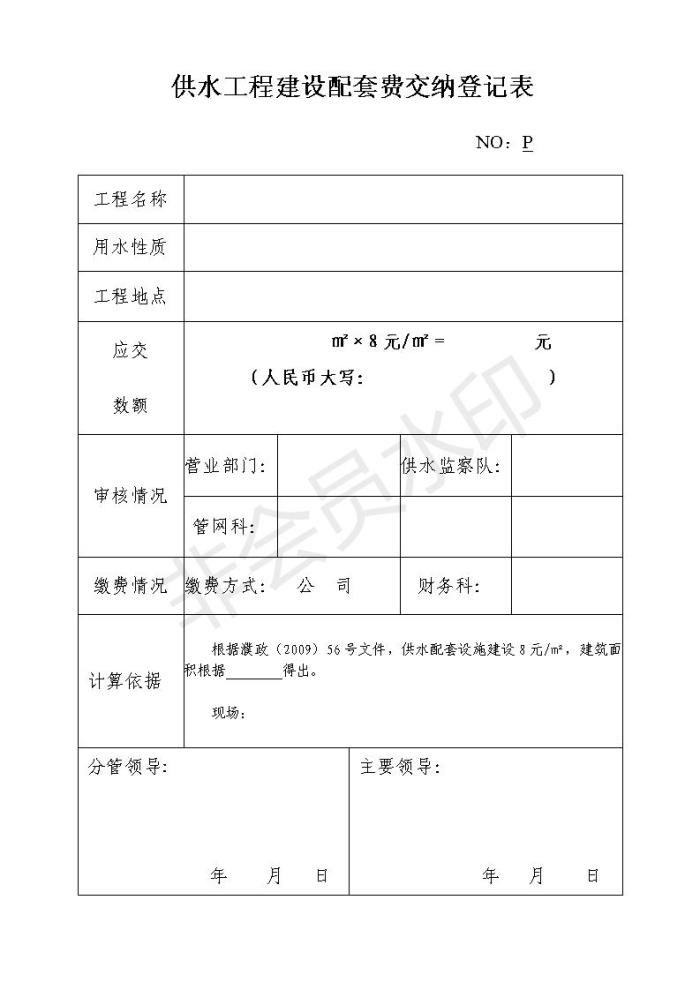 供水工程建設(shè)配套費交納登記表