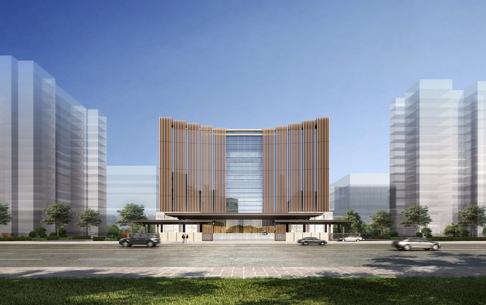 結(jié)合周邊的環(huán)境和節(jié)省造價的因素綜合考慮,建筑立面為干凈簡潔的現(xiàn)代風(fēng)格,臨床中心以橫向線條為主,公共衛(wèi)生中心以豎線條為主,市民健康體驗中心強調(diào)建筑的標(biāo)志性;建筑平面主要解決不同功能的區(qū)域劃分和避免流線交叉的問題。