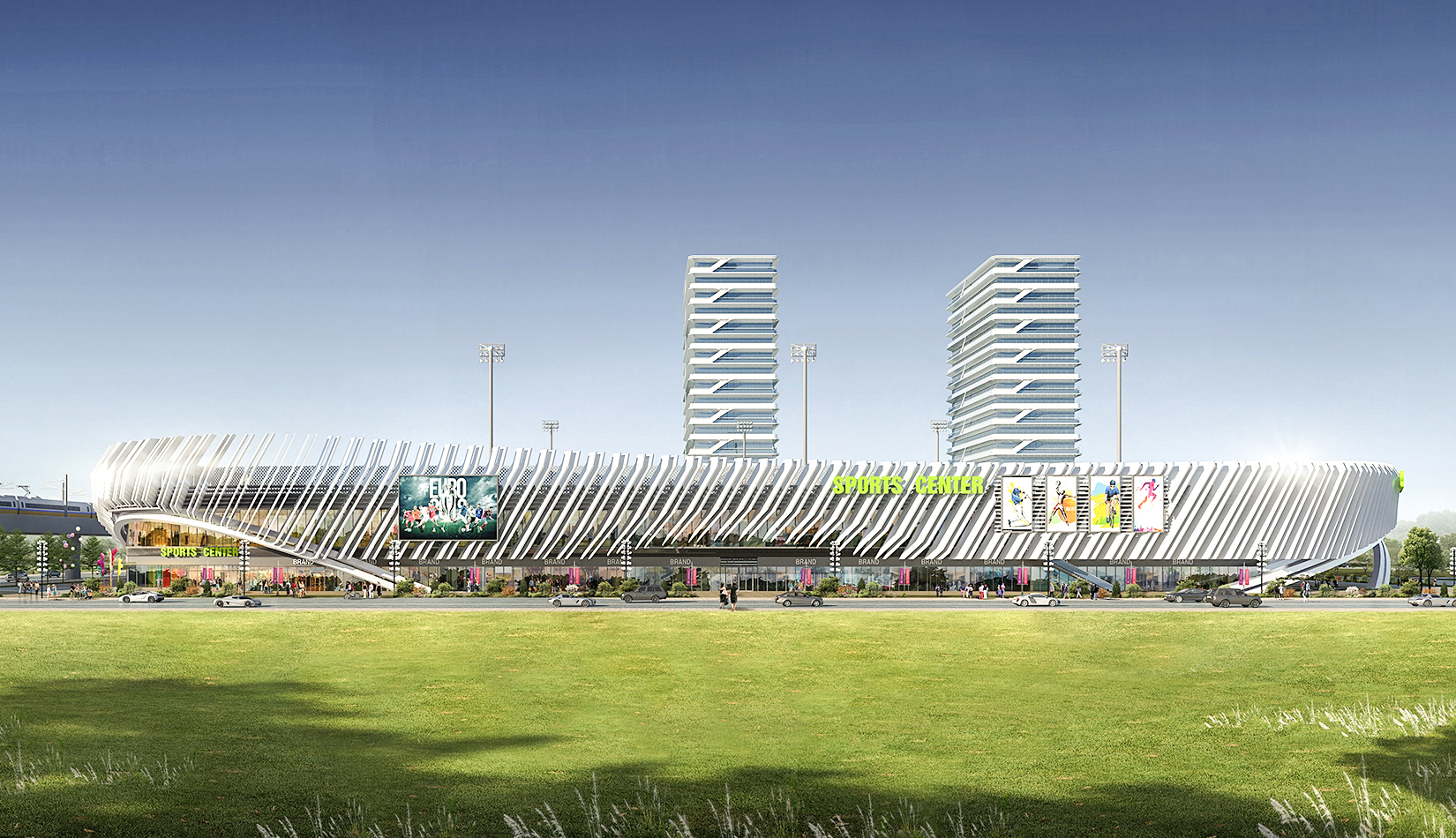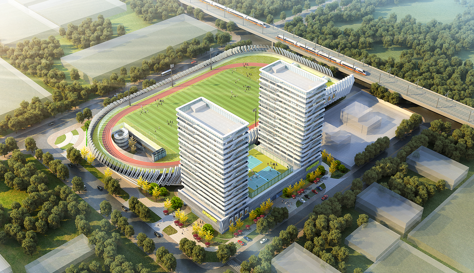本項(xiàng)目提取高鐵動車和海浪浪花的概念,用白色鋁板陣列與變化塑造出體育綜合體泛著浪花的海洋波浪造型。同時利用動車動感流線的造型設(shè)計(jì)出公寓的整體方案。海浪與動車流線結(jié)合,不僅代表了青島的特色,更是詮釋了積極動感的體育精神。將景觀引入建筑,以景觀打造形象,形成未來綜合體發(fā)展模式。