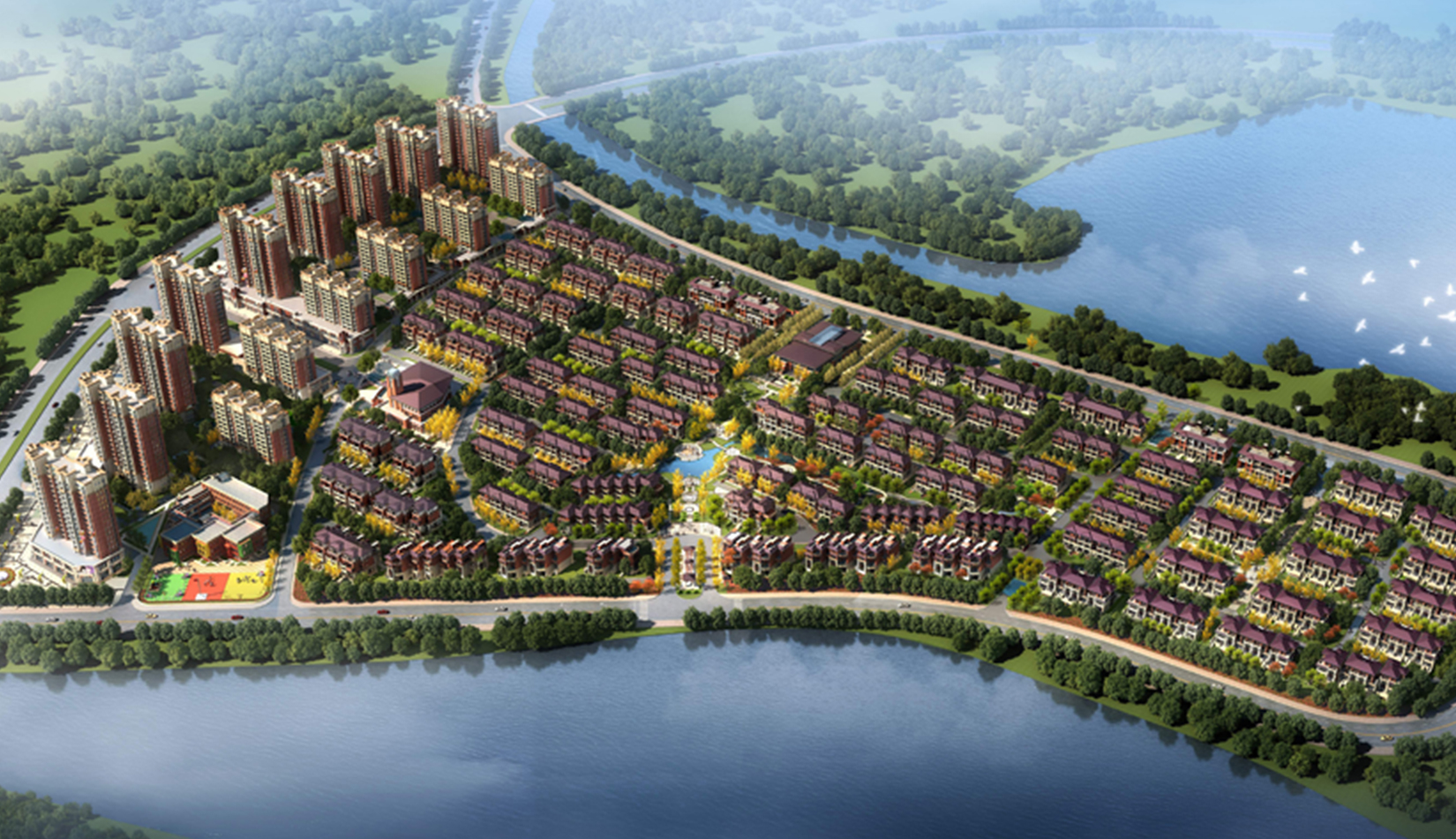 鄰水的景觀條件,合理布局高層與低密度住宅,并將公用空間、半公共空間與半私密空間、私密空間的巧妙搭配,融入到自·然環(huán)境之中,打造了各個不同特色的景觀節(jié)點(diǎn)。