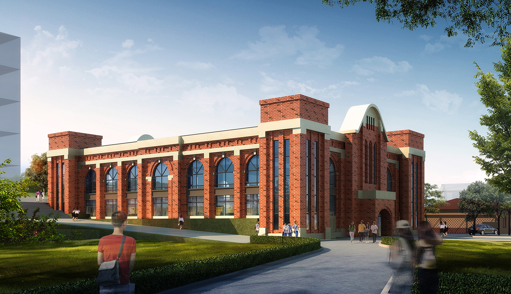 以打造“個(gè)性化”“特色鮮明”的學(xué)校為基本目標(biāo),創(chuàng)造均衡合理的校園布局,體驗(yàn)豐富的校園空間;按照“以人為本”的原則,營(yíng)造充滿(mǎn)活力的室外環(huán)境,將教育從教育課堂擴(kuò)展到學(xué)校的每個(gè)角落;通過(guò)庭院連廊聯(lián)系校園功能,創(chuàng)造大量的室外交流空間和灰空間,創(chuàng)造優(yōu)良的校園環(huán)境