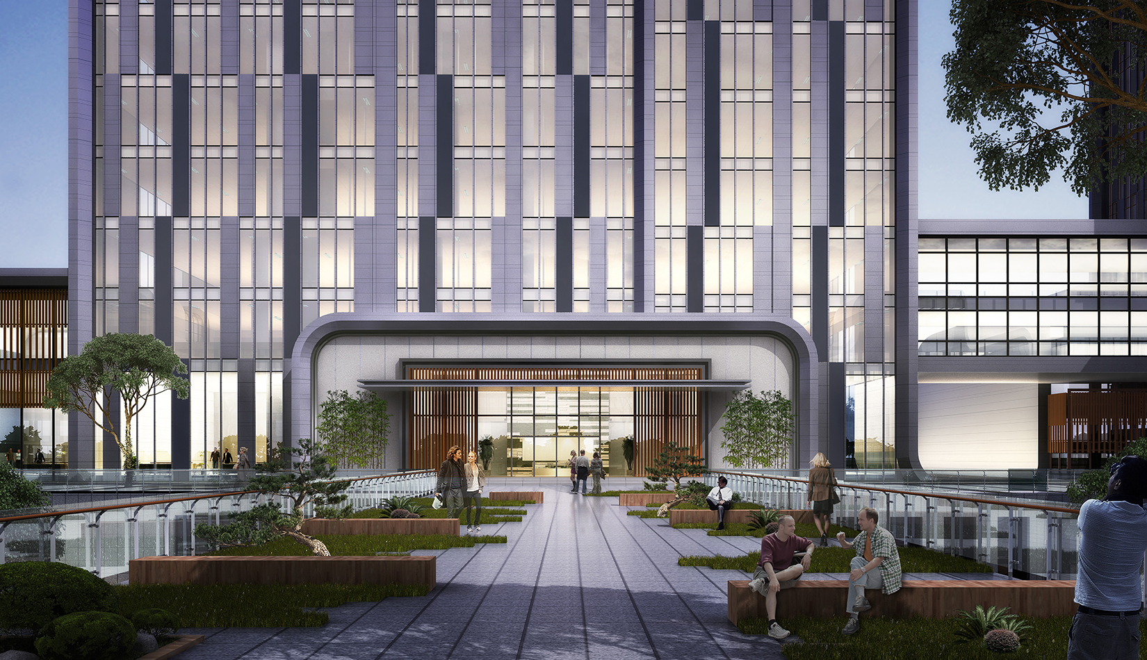 設(shè)計(jì)采用金屬板與玻璃為主要建筑材料,建筑高聳挺拔、簡約大氣,極具現(xiàn)代感。